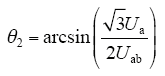 On the basis of three phase line voltage value and phase angle that we have gained above, by using calculating module we can achieving phase voltage of three phase ua, ub, uc. Their amplitude are Ua, Ub, Uc and their phases are θa, θb, θc. Voltage conversion control block structure presented in Fig.4. The relation of Line voltage and phase voltage is presented in Fig.5.