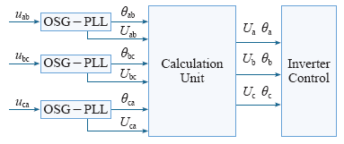 By using this phase-locked loop, we can measure each line voltage uab, ubc, uca and get three phase line voltage amplitude Uab, Ubc, Uca and the phase angle θab, θbc, θca.