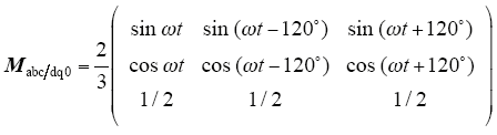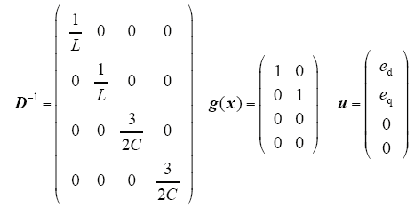 由于在三相abc坐标系的数学模型中存在时变的三相正弦交流电压,为了便于控制器的设计,通过等量变换到两相同步旋转坐标系统中,等量变换的矩阵为