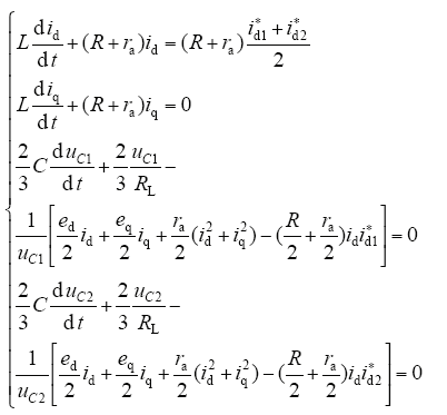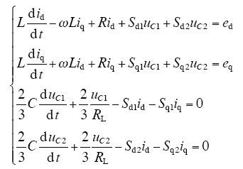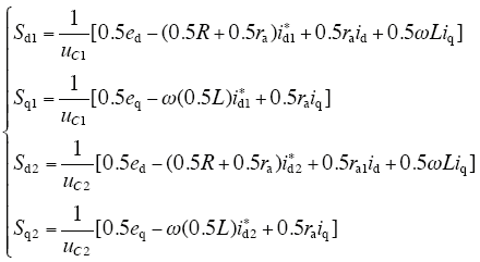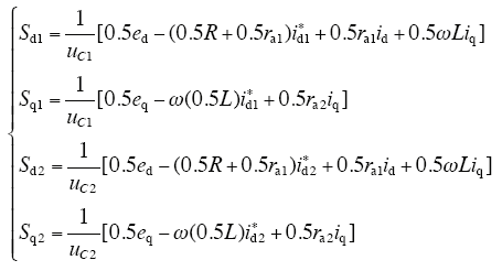 式中,id、iq为三相电网电流在dq轴分量;Sd1、Sd2、Sq1、Sq2为控制输入。
