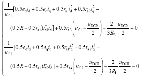 设期望平衡点为x* = [x1*x2*x3*x4*]T,VIENNA型整流器稳定运行时,期望功率因数为1,直流电压等于给定电压,给定电压按