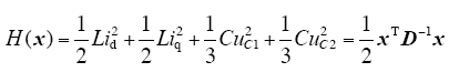 为使系统在期望的平衡点x*处保持渐进稳定,构造一个期望的闭环哈密顿函数Hd(x),且Hd(x*) = 0。对于任意一个x ≠ x*,有Hd(x)>0。配置Ja(x)和Ra(x)[9],使