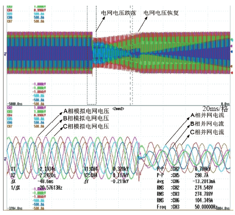 | 图15 LVRT有源测试方案三相电压不对称跌落波形图 |