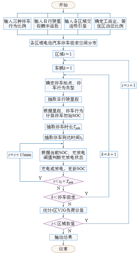 图5 基于蒙特卡洛仿真的V2G负荷时空分布预测流程 |