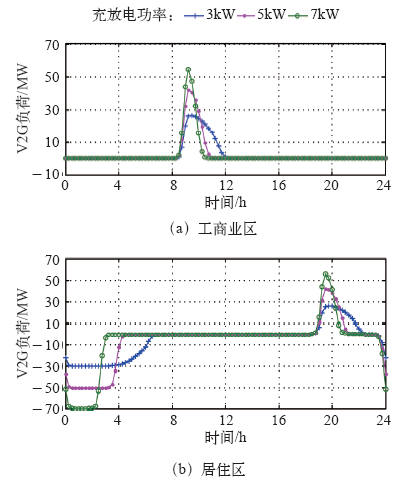 图9 不同充放电功率时的V2G 负荷 |
