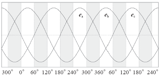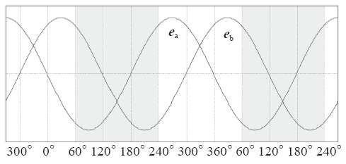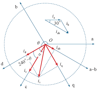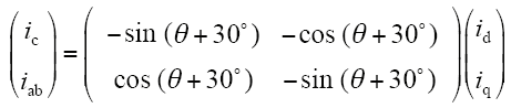 利用式(5)和式(6)就可以得到三相电流给定值的计算公式,根据给定值就可以对三相绕组采用上文所述的滞环电流控制,在这种控制方法下,a相和b相绕组串联成一相,其电流相位滞后于c相电流90°,并且与串联后所得的电压Vab = ea - eb相位相差180°。