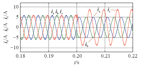 利用Matlab软件根据绕组开路型永磁电机相关的式(1)~式(4)可以建立电机的仿真模型,并搭建整体仿真模型,针对系统在单相绕组断路、两相绕组断路、整流器侧电机绕组短路和逆变器侧电机绕组短路等情况进行仿真研究,验证所提出的控制策略的有效性,系统的相关参数见表2。
