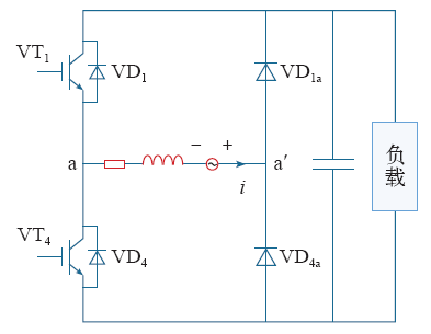系统的单相绕组等效结构如图2所示。绕组左侧与逆变器全控桥臂相连,右侧与整流桥不控桥臂相连,绕组通过这两个桥臂进行整流发电输出。常规星形联结的永磁发电系统,需确保其线电压值小于直流侧电压,而本文所提出的绕组开路型永磁发电系统,由于是对每相绕组分别进行发电调压控制,只需确保其相电压小于直流侧电压即可。因为发电机所发出的电压与其转速近似成正比,根据线与相电压之间关系,可以得知所提出的发电系统能将转速范围扩展为常规系统的约