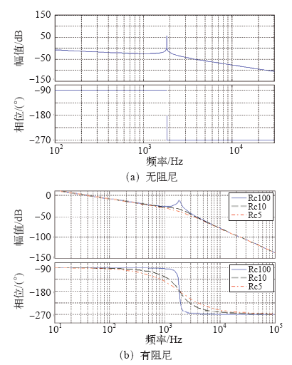LCL 型并网逆变器无阻尼与有阻尼伯德图