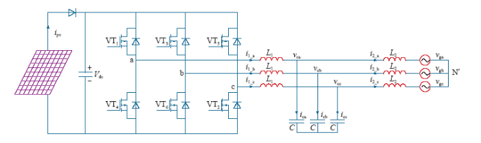 Diagram of PV grid-connected control principles of single-stage three-phase inverter with LCL filter