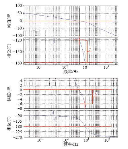 图13 加入电流调节器的系统相位、幅值裕度伯德图 |