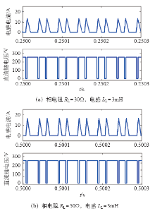 图7 带反并联开关管时电感电流和直流链电压波形 |
