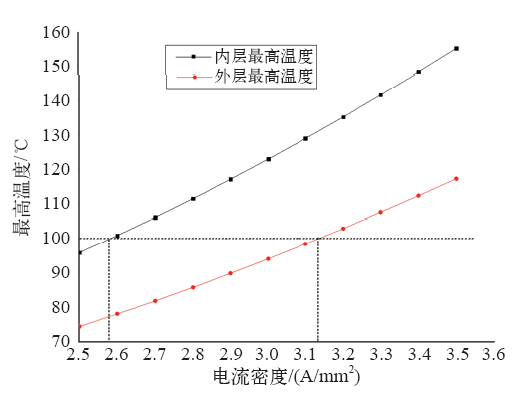 内外层定子最高温度变化曲线