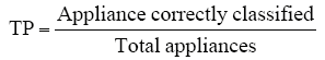 One type of rate is used: namely the fraction true-positive (TP). The TP defined in Equ. (11) is computed as the fraction of the number of correctly classified appliance samples to the total number of appliance.
