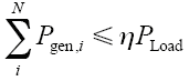 式中,η为规划的DG总容量占系统负荷总容量的比例上限,本文将波动性较大的光伏发电、风电等分开考虑,其占系统容量一般不超过负荷总容量的25%。
