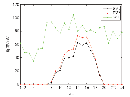 Daily output power curve of PV and WT