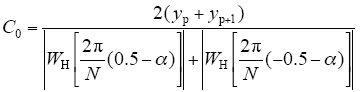 对kp和kp+1两条谱线幅值进行加权修正,得到幅值的修正公式为