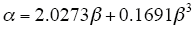 实际运算时,通常先求出β,由式(8)的反函数α = f- 1(β)求出α。