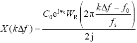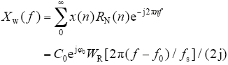 对信号x(n) = C0sin(2πnf0/fs + φ0)加改进余弦窗w(n),并进行离散傅里叶变换,得