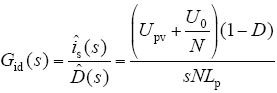 由于微逆变器在高频模式下运行时,逆变器输出电压和电流及占空比之间为非线性关系,为实现对微逆变器进行控制,需要对微逆变器进行系统建模。对图1中反激变换器运用状态空间法和小扰动法进行建模分析可知,占空比与输出电流之间的传递函数为