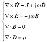 对于架空线路来说,产生交变电磁场的源为线路中的电流,属工频正弦激励,此时在线性媒质、正弦激励且稳态条件下,一般形式的麦克斯韦方程组可归结为不显含时间的复相量表示形式。工频环境下麦克斯韦方程组可以写成相量形式