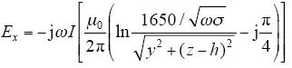 An approach to calculate electric field strength resulting from AC currents flowing through horizontal infinite line