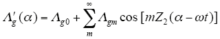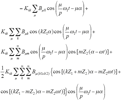 式中,bsk为斜槽的扭斜宽度。对于爪极发电机的转子而言,其齿距就是相邻磁极的极间距。因此,爪极发电机的气隙磁导可以写成