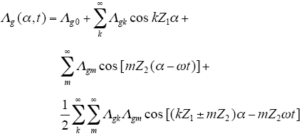 若仅考虑定子侧有齿槽,转子表面光滑时,爪极发电机的气隙磁导可以表示为