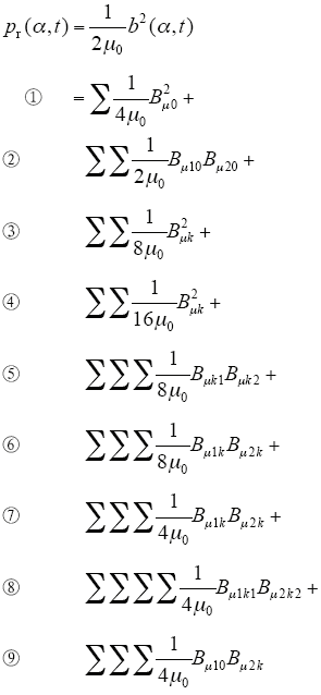 由于电机铁心硅钢片的磁导率远大于气隙空气磁导率,气隙中磁力线几乎是垂直进入定子和转子的铁心中,因此,电机气隙磁密的切向分量远小于气隙磁密的法向分量。对于气隙磁密的法向分量,其计算可以直接用前述的计算式求得。即