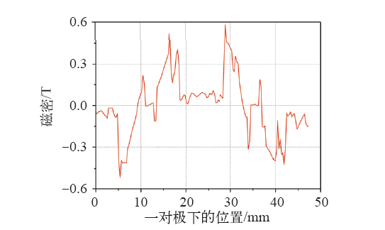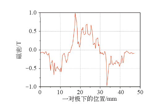 在气隙圆周的中心处沿着圆周方向作一条曲线,即可得到气隙磁场沿气隙圆周方向的空间分布。取该线上的一点,可得气隙磁场沿气隙圆周方向的时间分布。