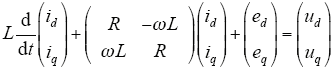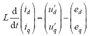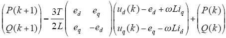 式中,id、iq为并网电流在dq坐标系下的d、q分量;ed、eq为电网电压在dq坐标系下的d、q分量;ud和uq为逆变器输出电压在dq坐标系下的d、q分量。
