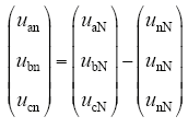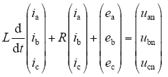 式中,ea、eb、ec为电网的三相电压;ia、ib、ic为并网逆变器输出电流;uaN、ubN、ucN为三相并网逆变器输出电压;unN为直流母线与三相电网中性点之间的电压。
