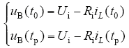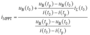 式中,uB(t0)和uB(tp)为脉冲起止时刻的光伏电池端电压测量值;iL(t0)和iL(tp)为脉冲起止时刻的光伏电池端电流测量值。