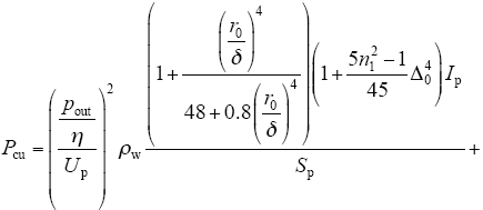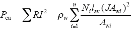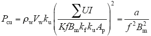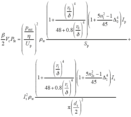式中,ρw和lav分别表示绕组导体的电阻率和每匝绕组的平均长度。则绕组的体积为Vw = lav·Wa,绕组导体的有效导电体积为Vwku,则