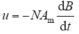 式中,N表示变压器的绕组匝数;Am表示变压器磁心的有效截面积,如果计及铁心材料的填充系数可定义为Am = kf Ac,其中Ac表示变压器磁心的几何截面积。