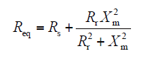 Req | Rs | Rs | Rs + $\frac{R'^{2}_{r}X'^{2}_{m}}{R'^{2}_{r}+X'^{2}_{m}}\qquad$ | Rs + Rr |