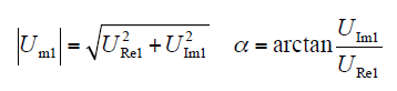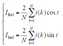由反切函数计算得到的角度α, β ∈ (-π /2,π/2),而实际电压电流的相角其范围应为[0,2π]。因此,应按下述方法对原计算角度值修正:当UIm1<0,α = α + π;同理,当IIm1<0,β = β + π。修正以后,α, β ∈ (-π /2,π/2)∪(π/2,3π/2)。