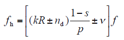 where nd is the order of eccentricity (nd = 0 for static eccentricity and nd = 1, 2, 3… for dynamic eccentricity); While f is the fundamental supply frequency; R is the number of pole pairs; k is any integer; v = ±1, ±3, ±5, etc. is the order of the stator time harmonics that are present in the power supply driving the motor[15].