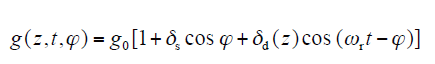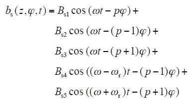 where g0 is the air-gap length of healthy motor; δs is static eccentricity degree; δd(z) is axial eccentricity degree function of dynamic eccentricity, since the dynamic eccentricity may be axially inhomogeneous, so it is a function of the axial position of the z. The inverse equation of air gap length can be written as