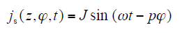 where Λn(z) = μ0Kn(z), Λn(z) is the amplitude of the second n item in the Fourier series expansion. Stator current density is