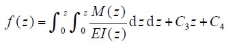 In which C3 and C4 are constants of integration that can be determined by the boundary conditions of the displacement. Finally, the bending stiffness at the center of the shaft can be obtained