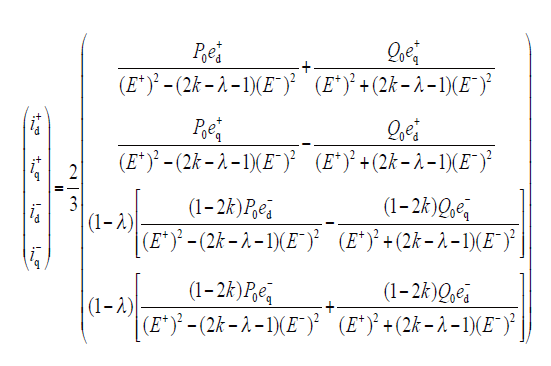 式中,(E+)2 = (ed+)2 + (eq+)2,(E-)2 = (ed-)2 + (eq-)2,0≤k≤1, 0≤λ≤1。