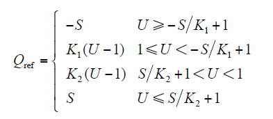 文献[16]提出线性无功功率控制,无功功率与电压关系如式(11)与式(12)所示,式中电压使用标幺值,功率使用有名值。