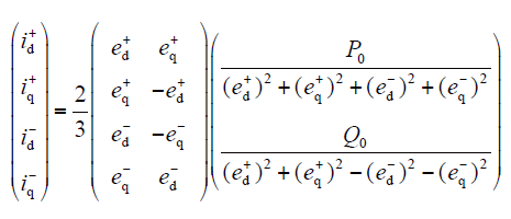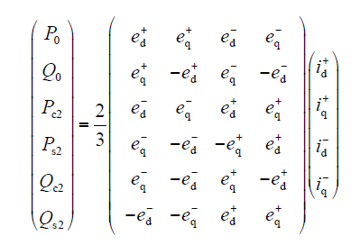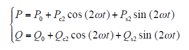 式中,P0与Q0为瞬时有功功率和无功功率平均值;Ps2、Pc2为有功功率正弦、余弦峰值;Qs2、Qc2为无功功率正弦、余弦峰值,在dq坐标系中,这些值为