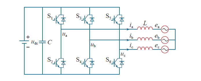 图1中,ea、eb、ec为电网电压;ua、ub、uc为逆变器输出电压;ia、ib、ic为逆变器输出电流;udc为直流侧电压;C为直流侧电容。