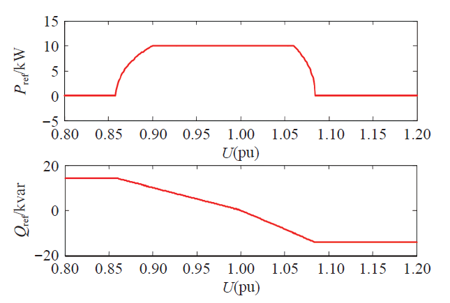 (12)中,Qref为无功功率参考值;U为当前的电压值;S为DG总容量,有功功率参考值为