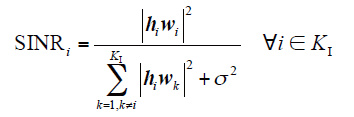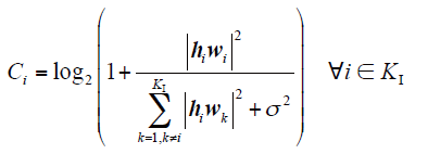虽然信息接收端会受到其他非预期的信息和能量信号的干扰,但能量信号波束携带的是伪随机信号而不是信息信号,因此,信息接收端可以通过额外的技术将能量信号波束的干扰消除。则第i个信息接收端的信干噪比(SINR)可表示为
