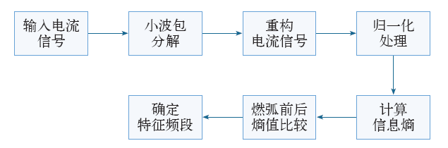 国内外对电弧诊断的研究大致包括:①建立电弧模型,通过模型参数研究故障电弧,目前主要停留在仿真分析阶段。②根据电弧发生时所产生的物理现象,如弧声、弧光、辐射及温度变化等物理量检测电弧。③根据线路电流和电压波形检测电弧。