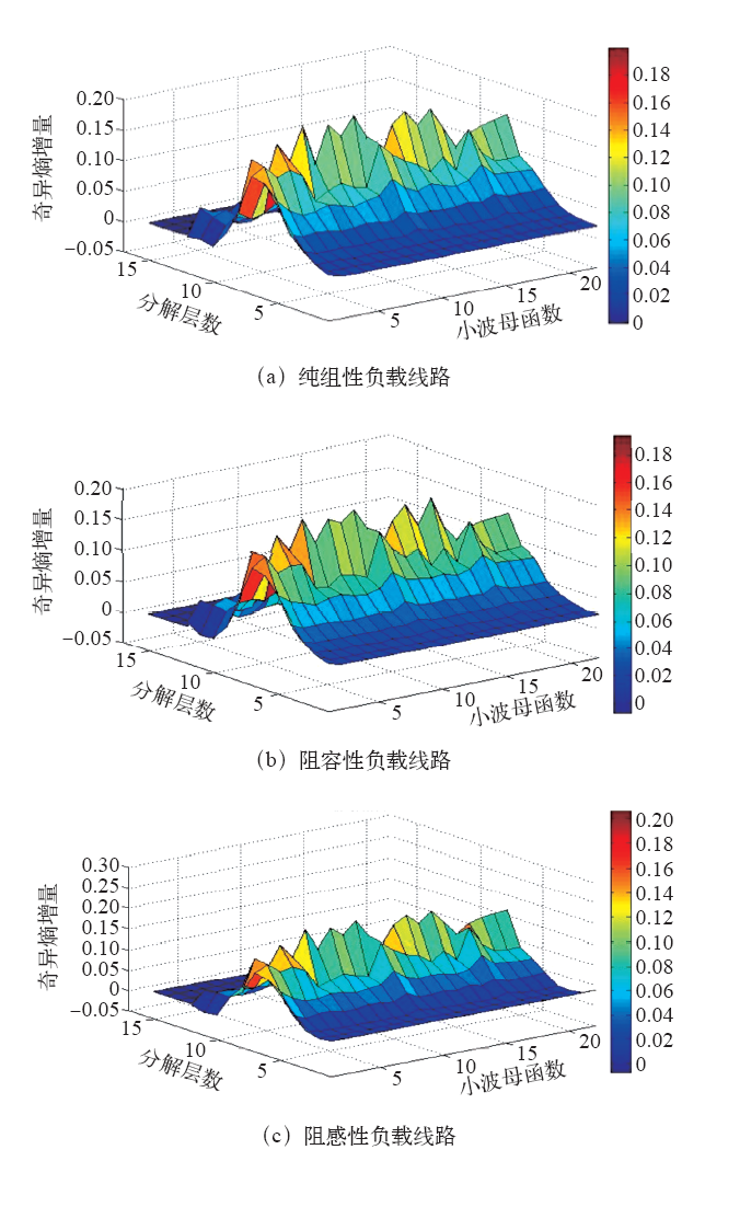小波母函数和分解层数对电弧电流奇异熵增量的影响