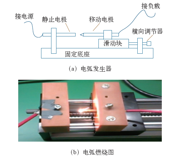 图2 电弧发生器及电弧燃烧图 |